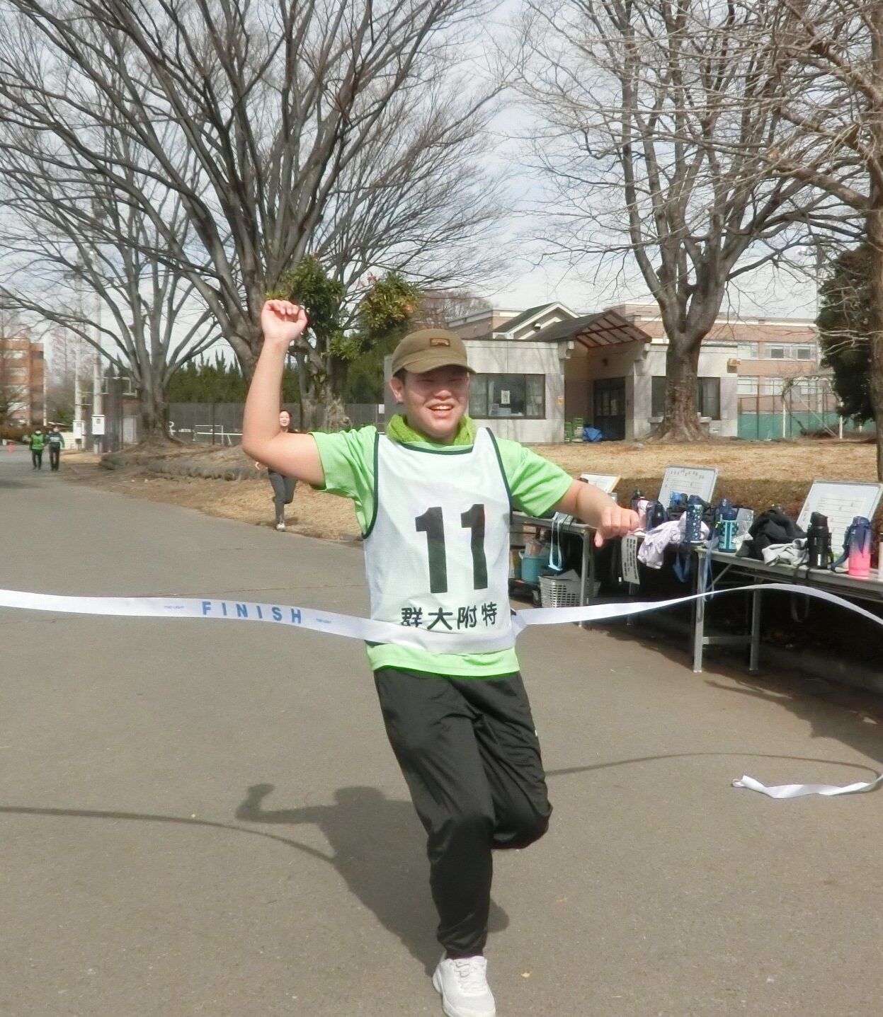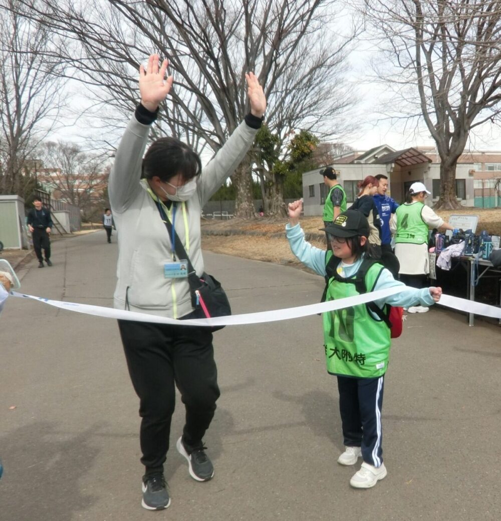 2026年2月27日に、荒牧キャンパスで附属特別支援学校高等部の生徒によるウォーキング・ジョギング大会が開催されました。青空の下、生徒た ちは、それぞれの目標(10キロ・8キロ・6キロなど)をめざして、陸上競技場からキャンパス内のコースを走ったり、歩いたりしました。ボランティアの学部の学生たちが、生徒と共に走り、励ましの声をかけました。また、多くの保護者の方々も応援くださり、生徒たちの頑張りが増しました。ゴールテープを切る生徒たちの満足げな笑顔が印象的でした。